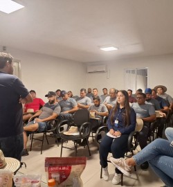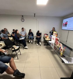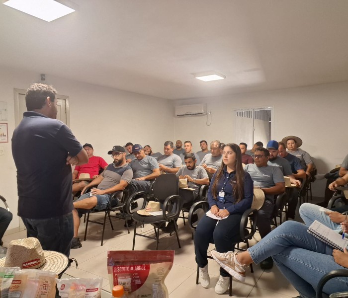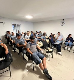 No último dia 13, foi realizada a primeira reunião do ano de 2025 com o setor logística-transporte na matriz da Rampinelli Alimentos. Nesta manhã foi reunida a equipe de logística, todos os motoristas e também o diretor Thiago Rampinelli e o gerente Adalto Spilere.