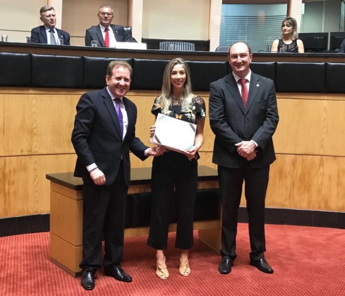 Rampinelli Alimentos acaba de receber pelo 5º ano consecutivo a Certificação de Responsabilidade Social da Assembleia Legislativa do Estado de Santa Catarina – ALESC. A cerimônia de premiação aconteceu dia 04 de dezembro, no plenário Osni Régis em Florianópolis e recebido por Juliana Rampinelli.(foto)