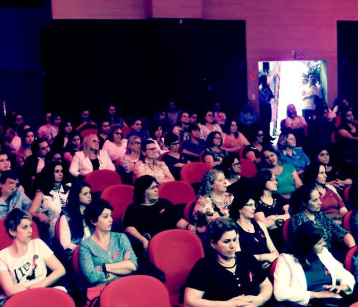 Durante o mês, a matriz recebeu em sua fachada o símbolo da campanha, computadores e colaboradores receberam laços na mesma cor. E para marcar a data, as mulheres do município de Forquilhinha/SC onde está localizada nossa matriz e nossas colaboradoras participaram de uma palestra pra lá de animada com a Dra. Beatriz Althoff, médica especialista em mastologia, com o tema "Desmistificando o Câncer de Mama e como se Prevenir. Na ocasião, foi oferecido um coquetel com produtos feitos a base da Farinha de Arroz Rampinelli, receberam brindes e informativos sobre a doença.