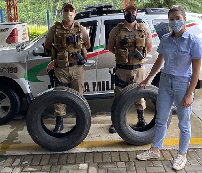 No último dia 22 de janeiro, a Rampinelli Alimentos realizou a doação de dois pneus para equipar o caminhão do Pelotão da Polícia Militar de Forquilhinha, recebido em doação do Tribunal de Justiça de Santa Catarina.