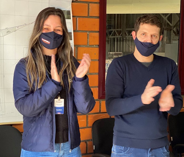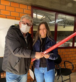 No dia 23 de julho, foi a vez de parabenizar os formandos de 2021. Paula e Willian foram os colaboradores da matriz da Rampinelli que receberam as homenagens. Na cerimônia, ambos ganharam lembranças para marcar a data: um guarda-chuva e uma caneta personalizada.
