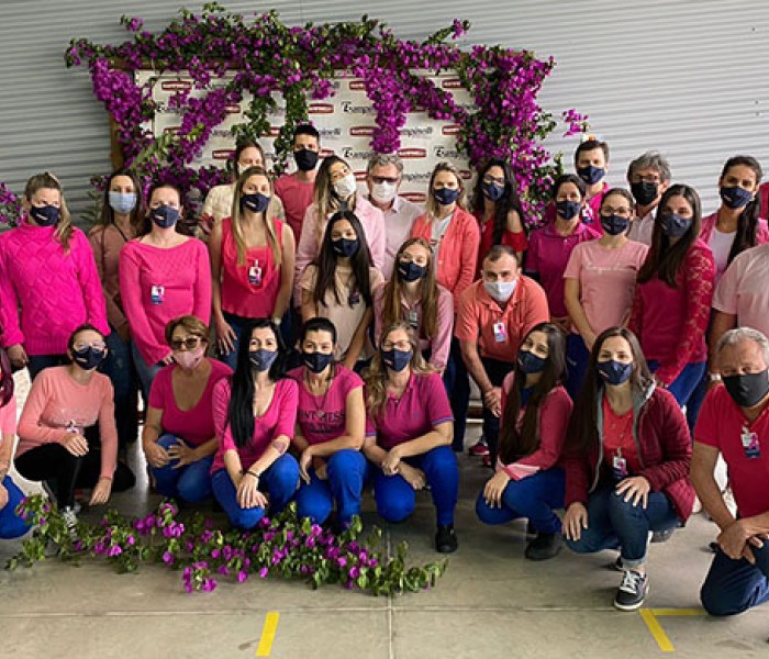 Nesta sexta-feira (08/10), a Rampinelli Alimentos organizou uma ação com os funcionários para relembrar da importância da prevenção do câncer de mama. Em prol do Outubro Rosa, a empresa convidou colaboradores da matriz e filiais a vestirem rosa, um pequeno gesto que busca conscientizar as mulheres sobre o autocuidado, parte da campanha "Quem ama, se cuida".